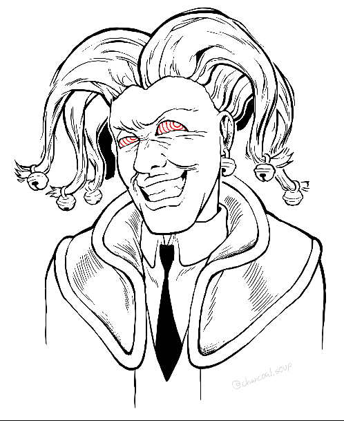 I drew him in my style (fan design?), and I didn't concern myself with trying to make it look like him in the series. If I can get to it, I'll draw him more faithfully next time.